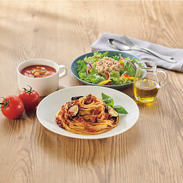 日清エキストラバージンオリーブ油50g、MCイタリアンドレッシング150ml、マルハニチロ油そのままライトツナリセッタ70g×2、ザ・クラフトパスタ ブロンズスパゲッティ1.7mm(300g)、リコピンリッチトマトソース150g×2