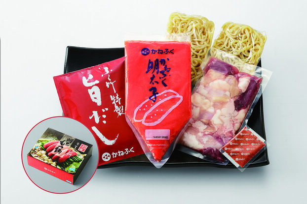 牛もつ300g(国産)、明太子はら子300g、ちゃんぽん麺180g、