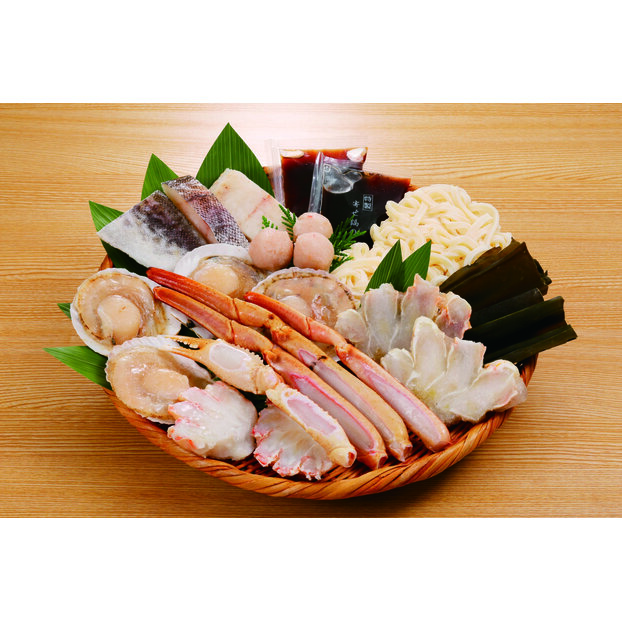 片貝ほたて180g、かに入り団子45g、うどん250g、昆布15g、