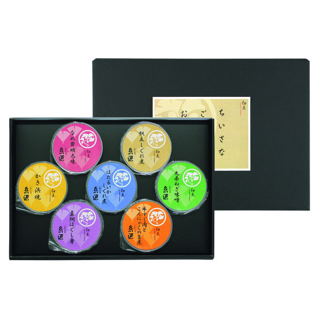 なめ茸明太味・九条ねぎ味噌各60g、帆立しぐれ煮・牛すじ肉とこんにゃ くの旨煮・かき浜焼・ほたるいかしぐれ煮各50g、真鯛ほぐし身30g