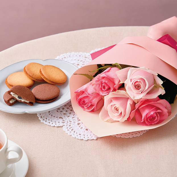 【母の日】アンリ・シャルパンティエ ラング・ド・シャ&ピンクバラのブーケ【6004】