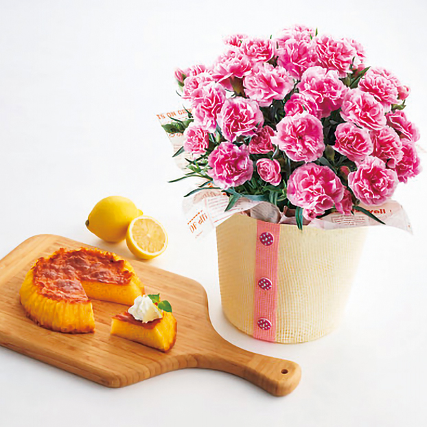 【母の日】瀬戸内レモンカステラとカーネーション「ティーパーティ(5号鉢)」【6009】